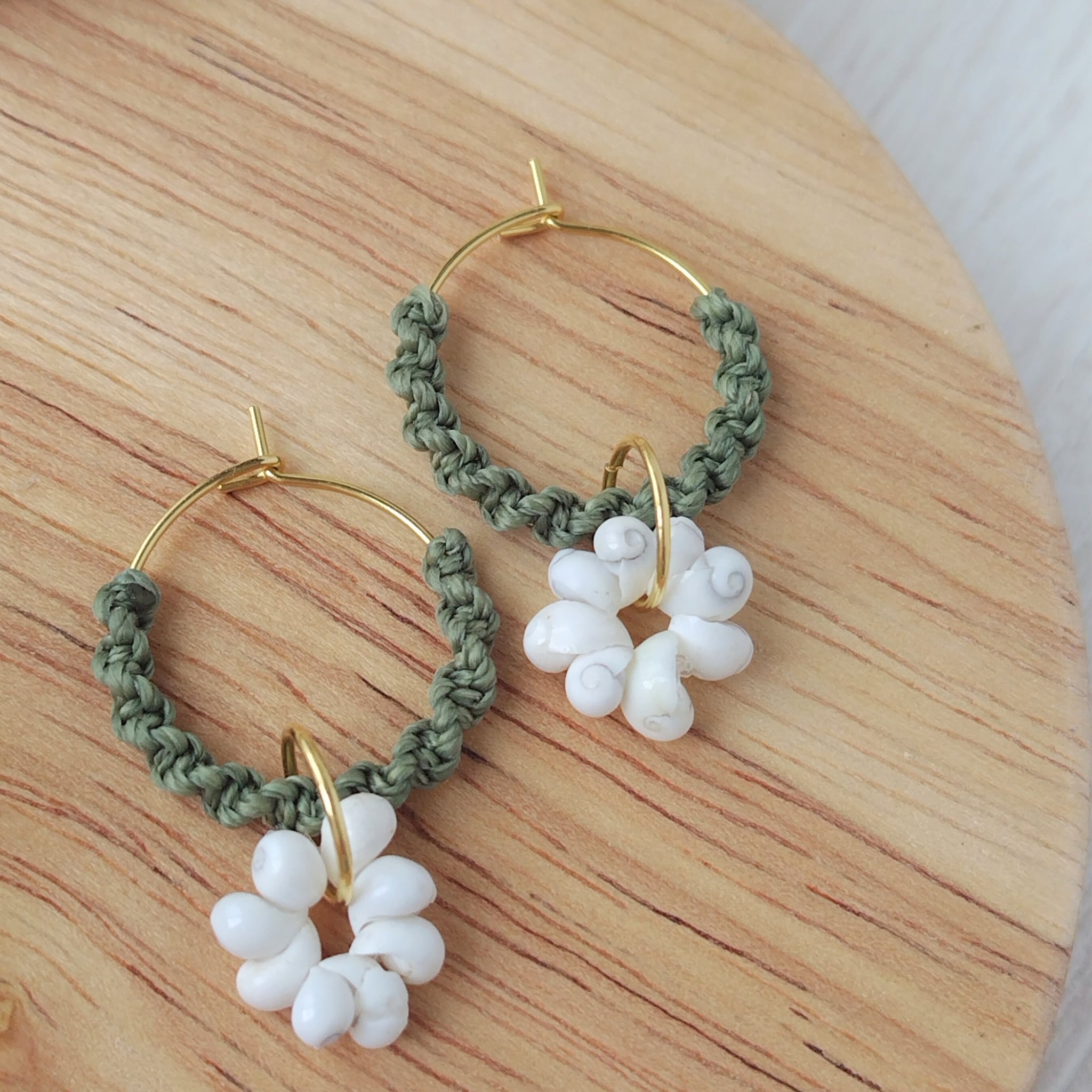 モンゴシェルリングのフープピアス/ジェイドグリーン